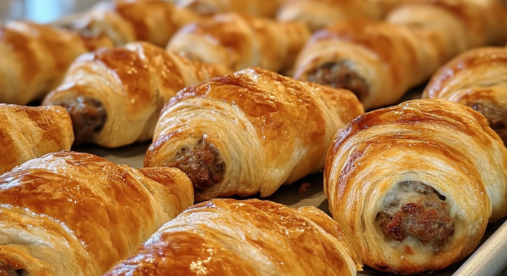 A buttery, savory pastry roll filled with creamy sausage and baked until golden.