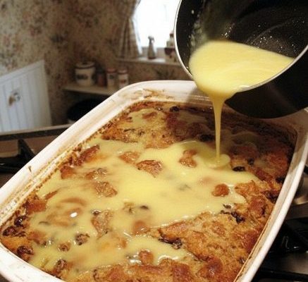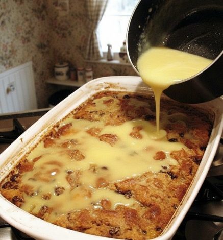This recipe for Grandma’s Old-Fashioned Bread Pudding is a timeless dessert that transforms simple ingredients into a rich and comforting treat. The warm, custardy pudding, studded with sweet raisins, is perfectly complemented by a luscious, homemade vanilla sauce. It’s a classic, soul-soothing dessert that brings a taste of nostalgia to any table.