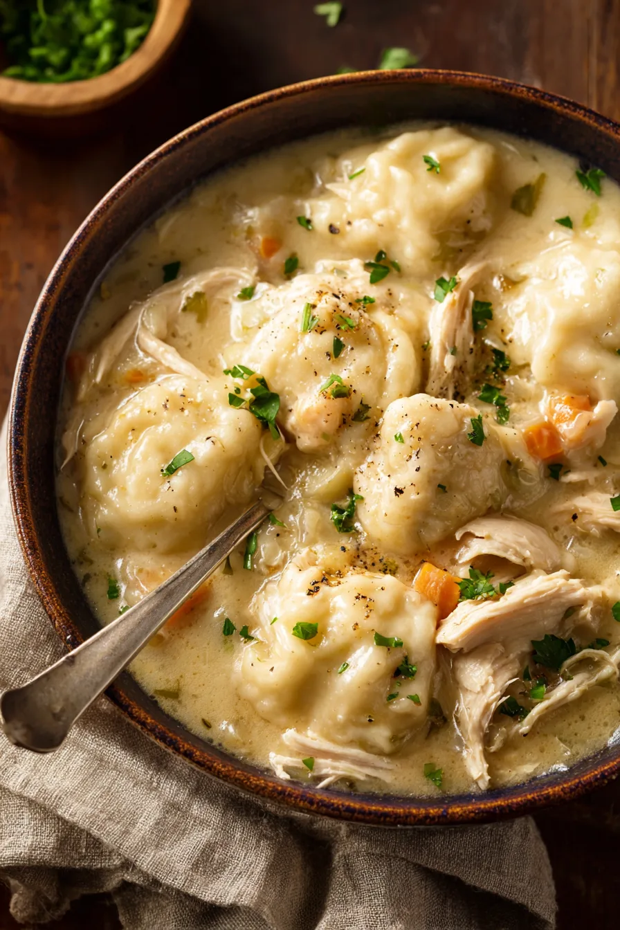 This version is made on the stovetop and doesn’t require any fancy gadgets or ingredients. It’s the kind of recipe that fits into your weekly rotation or shines on the holiday table. From the perfectly seasoned broth to the melt-in-your-mouth dumplings, it’s a bowl full of old-fashioned happiness.