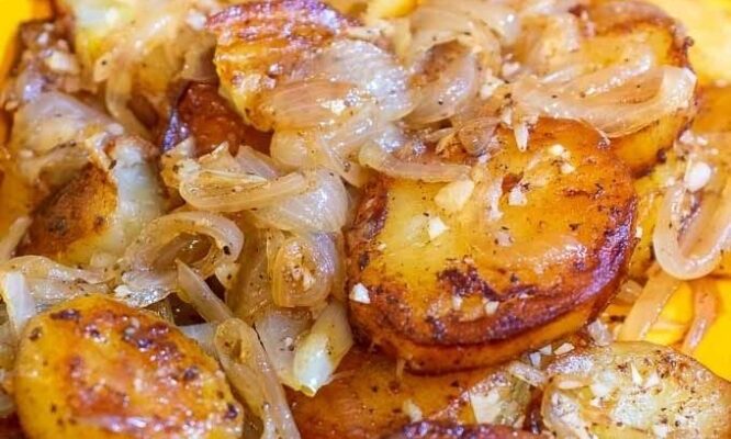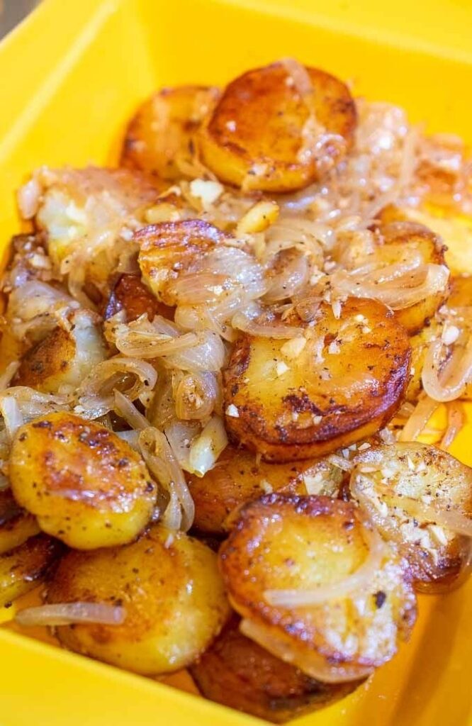 - In a large frying pan, and over medium heat, melt the butter and pour in the olive oil.
