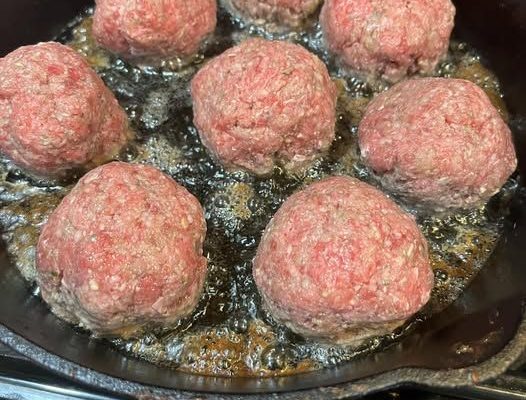 In a sauté pan, heat about 2 tablespoons of infused olive oil. Once hot, add the meatballs and sear them until they are golden brown on all sides. Avoid overcrowding the pan.