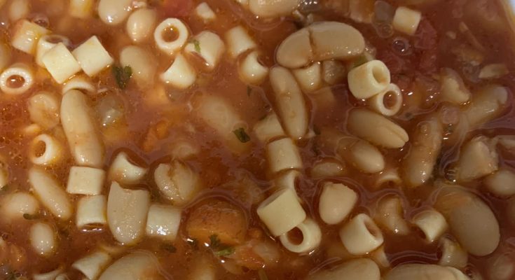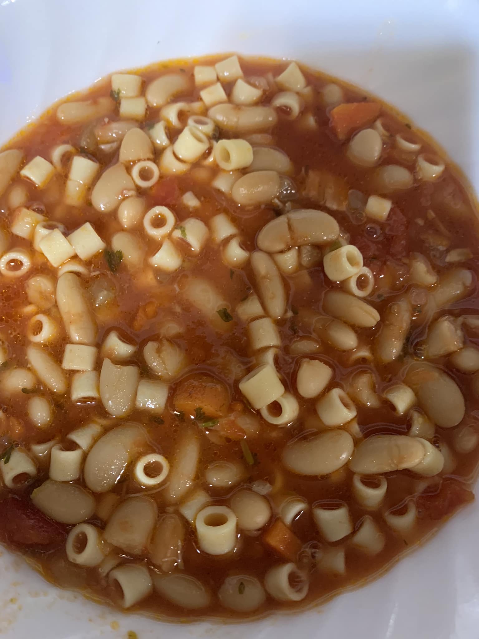 Rustic and Filling: A hearty blend of beans and pasta with rich tomato and garlic flavors.