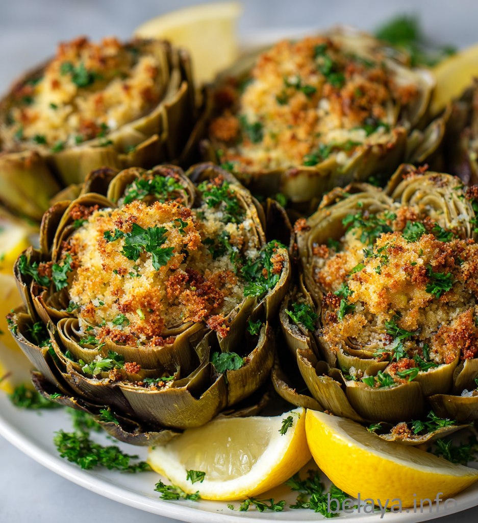 Fresh artichokes – The star of the dish, offering a tender, nutty heart and sturdy leaves that cradle the flavorful stuffing.