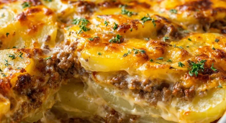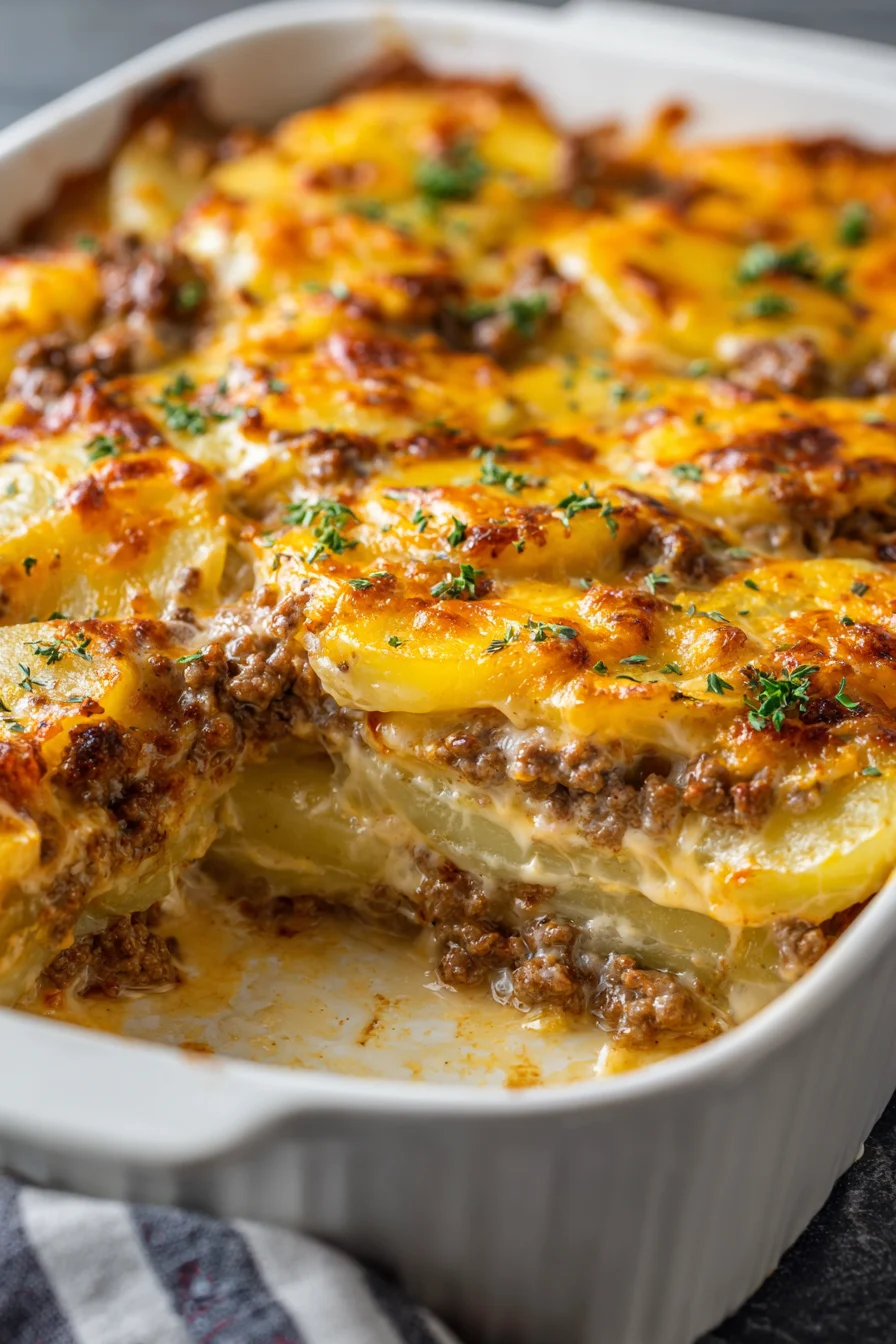 I first discovered this casserole when I was searching for a way to use up extra ground beef and potatoes on a busy weeknight. After a little experimenting, I layered thinly sliced potatoes with seasoned ground beef, a creamy sauce, and plenty of melty cheese. What came out of the oven was golden and bubbly, with layers that reminded me of comfort food at its finest. The whole family asked for seconds, and it quickly became one of our go-to recipes.