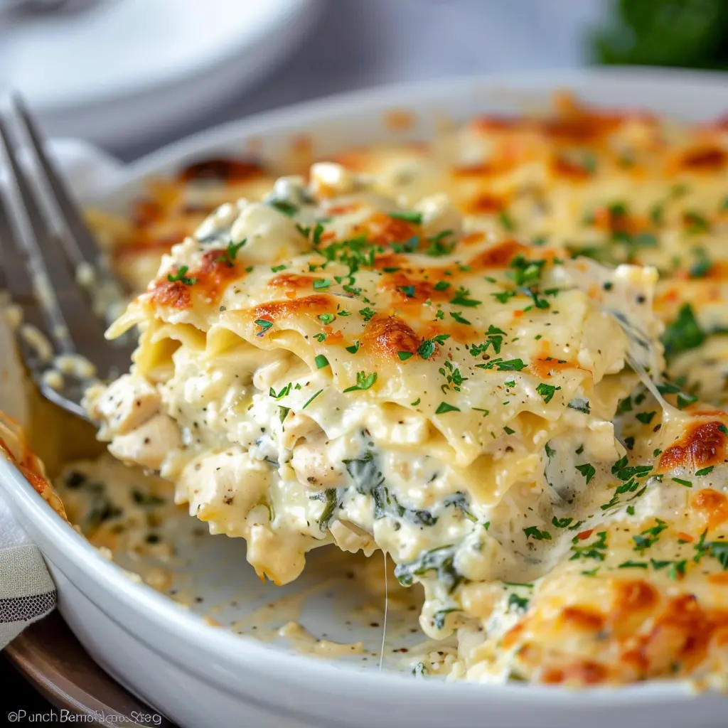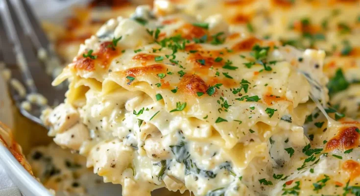 I still remember the first time I had this dish at a friend’s house for Sunday dinner. The aroma alone was enough to make my mouth water as it wafted through the air. But that first glorious bite? Pure comfort food ecstasy. The tender pasta layers were smothered in a luscious alfredo sauce with shredded chicken, wilted spinach and gooey mozzarella in every single bite. It was love at first taste.