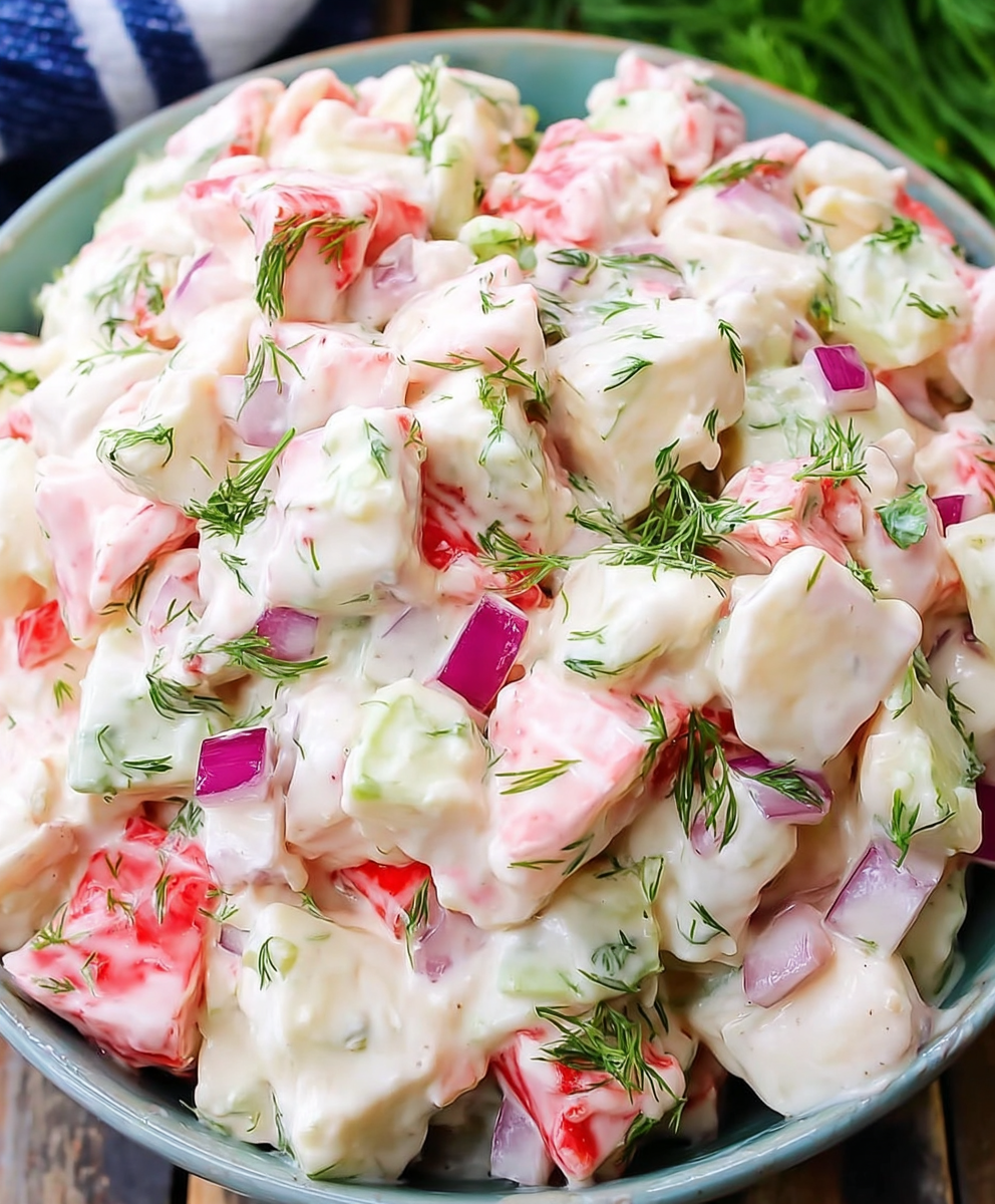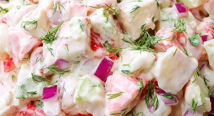 Dive into the refreshing world of Crab Seafood Salad, a dish that evokes memories of beach picnics and warm summer days. Made with a harmonious blend of imitation crab, crispy celery, and shallots, this salad is enveloped in a creamy dressing enhanced with paprika and dill. Whether you’re preparing for a weekend gathering or a simple family lunch, this salad is sure to impress. The ease of preparation combined with its irresistible flavors make it a must-try for seafood lovers everywhere.