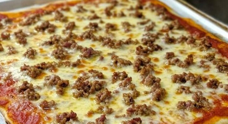 This recipe replicates the nostalgic, thick-crust “School” Pizza with a savory meat topping and a rich, herby sauce, baked on a sheet pan just like the cafeteria favorite.