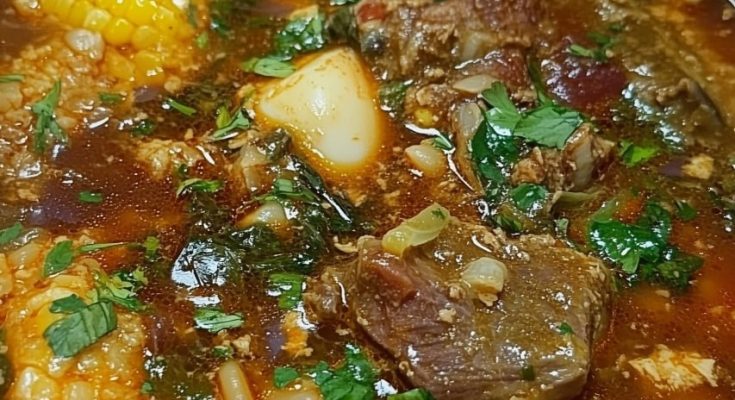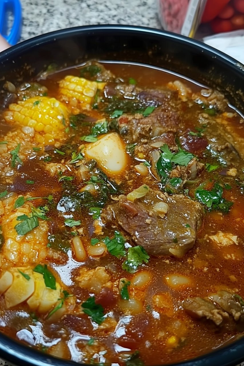 A classic Mexican beef-and-chile stew with a bright, charred tomato-chile broth, tender  beef shank, corn, and calabacita. Hearty, fragrant, and perfect with warm  tortillas.