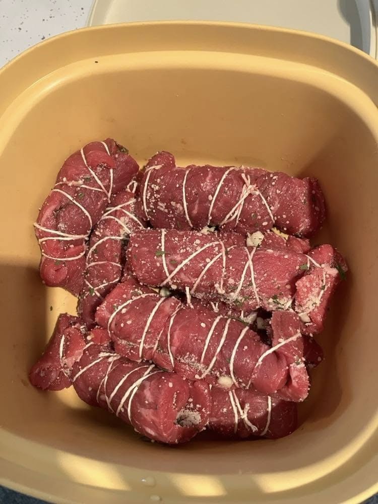 Choose the right cut – Top round or flank steak works best; look for slices with minimal connective tissue so they roll easily and tenderize beautifully.