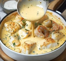 This creamy seafood casserole is rich, comforting, and full of delicate ocean flavor.