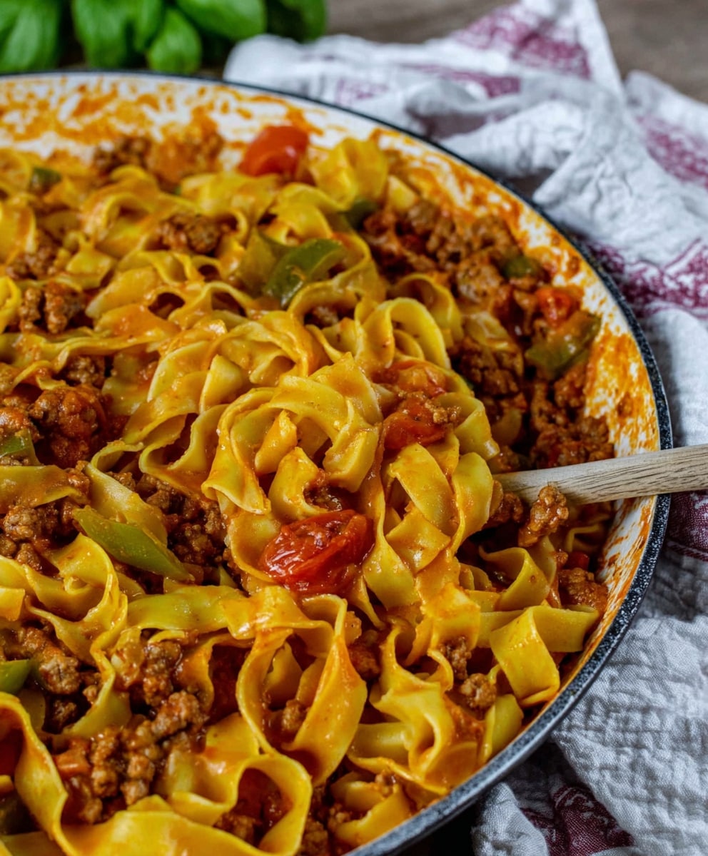 Choosing the right cookware can significantly affect the outcome. A large, heavy-bottom pan, like a cast iron or Dutch oven, is ideal. While pappardelle noodles are recommended, you can opt for any other pasta if unavailable. The choice between white and red wine depends on personal preference, but remember, the alcohol can always be substituted with chicken stock. For vegetarians, omit the sausage or replace with tofu, echoing the Thai inspiration. And if you’re planning ahead, making the sauce in advance only enhances its flavor, ensuring the perfect Italian Drunken Noodles experience every time.