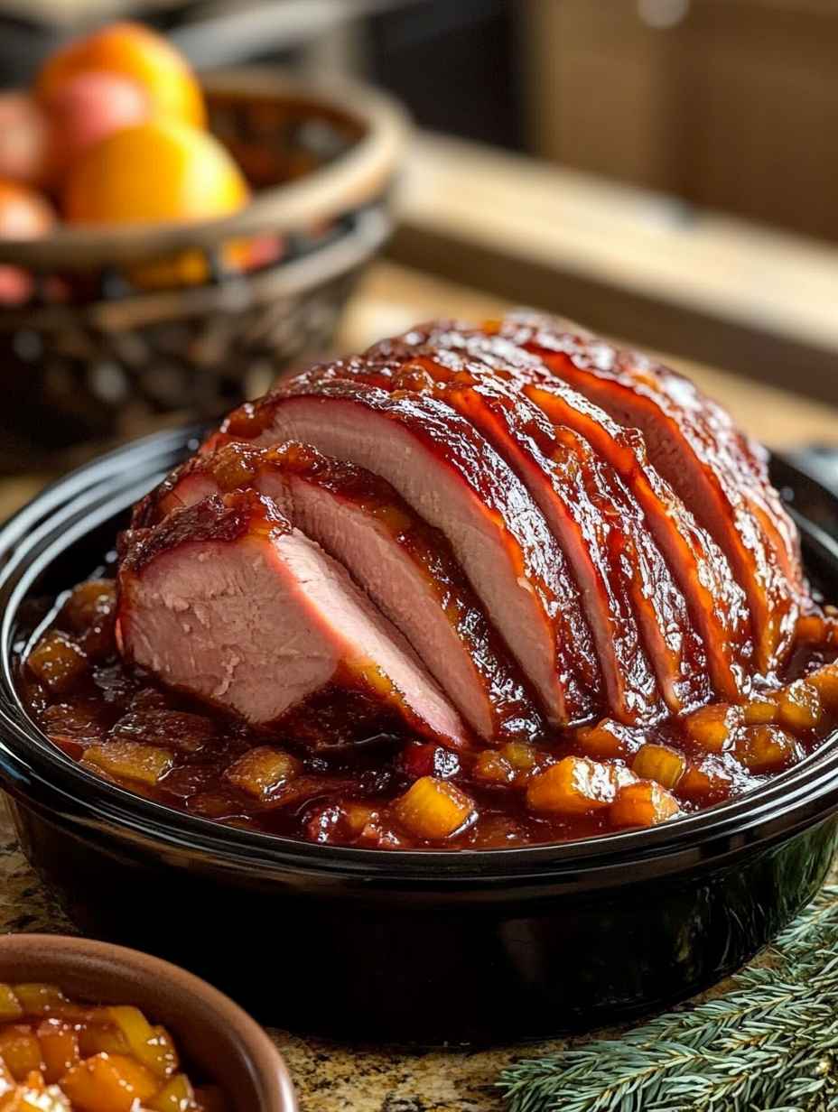 The magic happens when brown sugar meets apple cider vinegar, creating a glaze that’s perfectly balanced between sweet and tangy. Add in warm spices like cloves and cinnamon, and you’ve got something that tastes like Christmas in every bite.