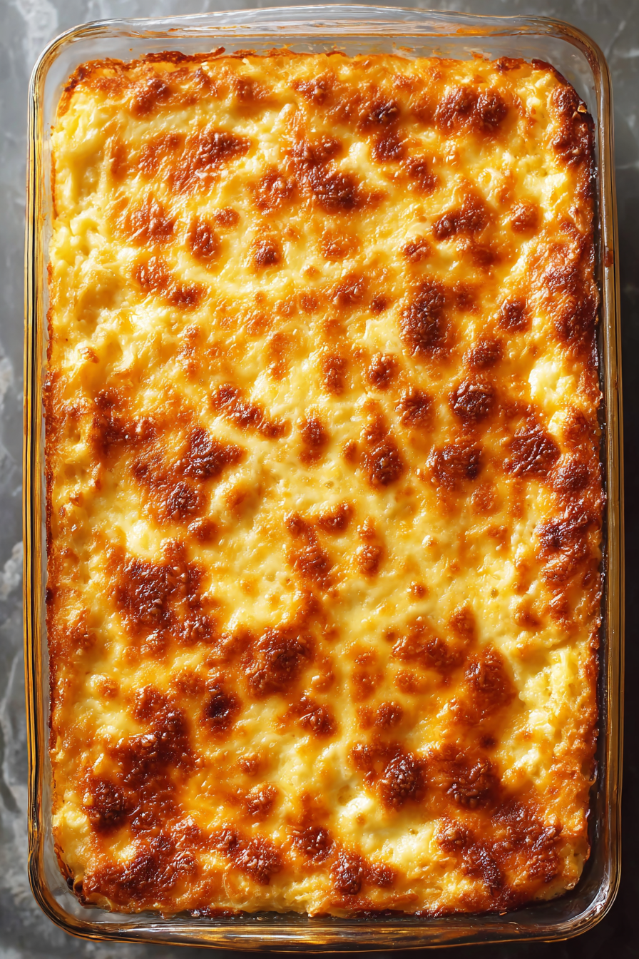 Add crispy bacon bits, green onions, and a sprinkle of extra cheese on top—like a baked potato in casserole form.
