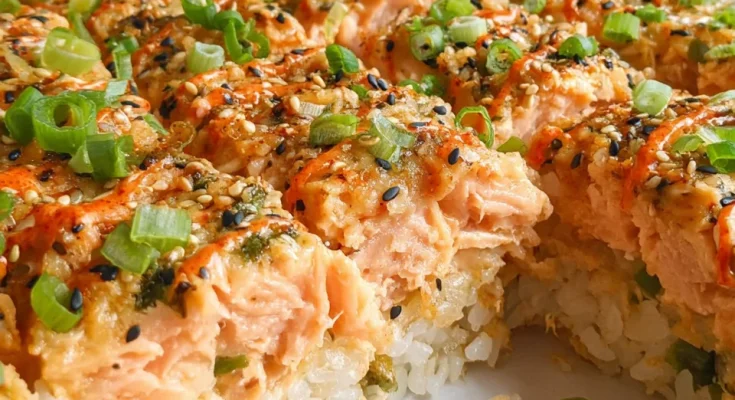 Salmon Sushi Bake is a creamy and flavorful dish combining sushi rice with tender salmon and various toppings baked together for a delicious meal.