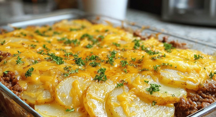 The beauty is in the simplicity. You brown some bacon (and your kitchen smells incredible), cook the beef in all those lovely bacon drippings, layer everything with sliced potatoes and cheese, then let the oven do the heavy lifting while you help with math homework or fold that load of laundry that’s been sitting there all day.