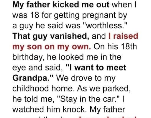 When I was seventeen, one truth shattered my life: I was pregnant. That one sentence cost me my home, my father’s love, and everything familiar. Eighteen years later, my son stood on that same doorstep and said something neither of us saw coming.